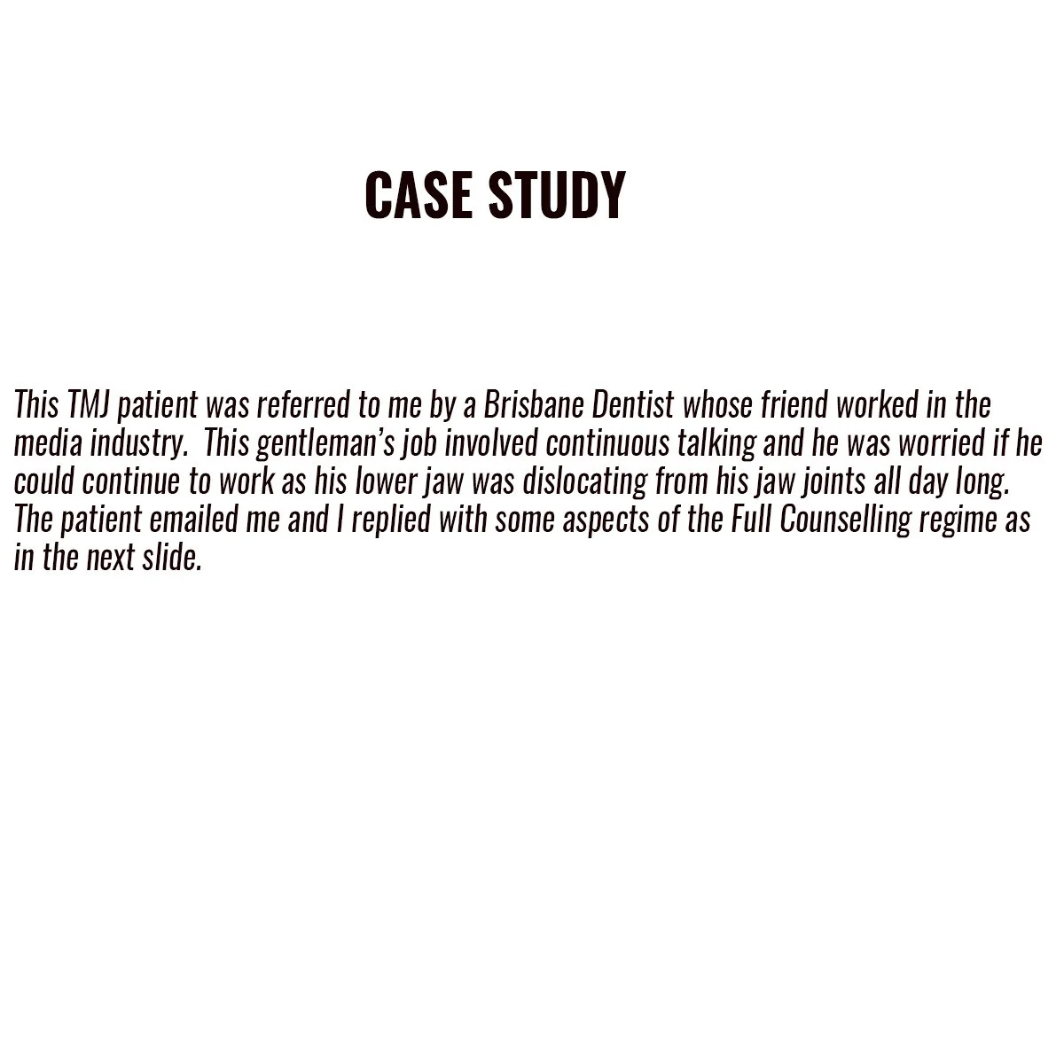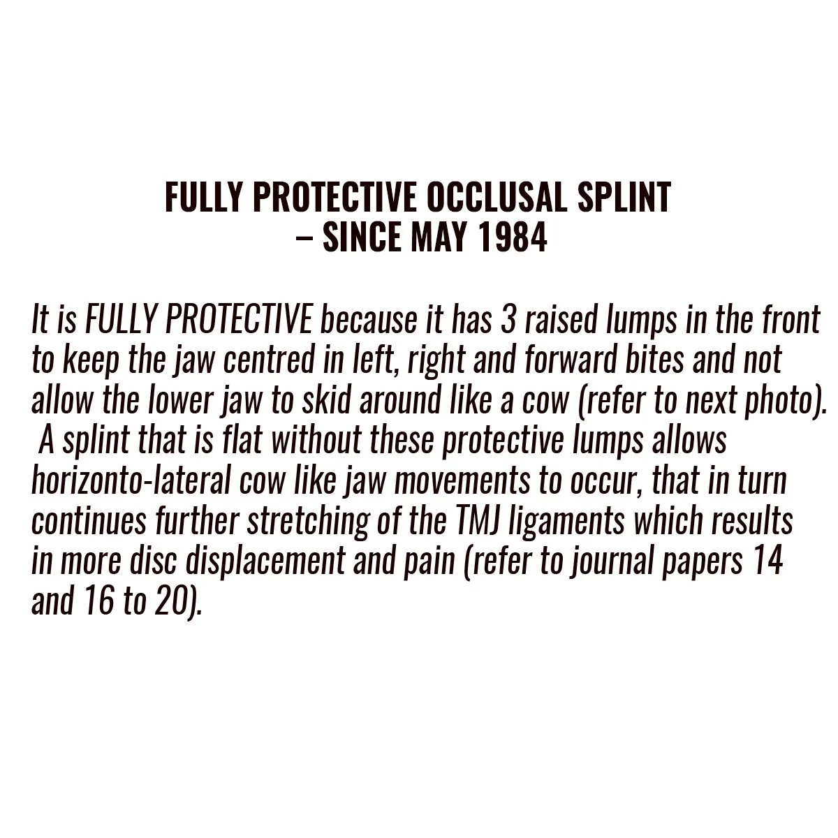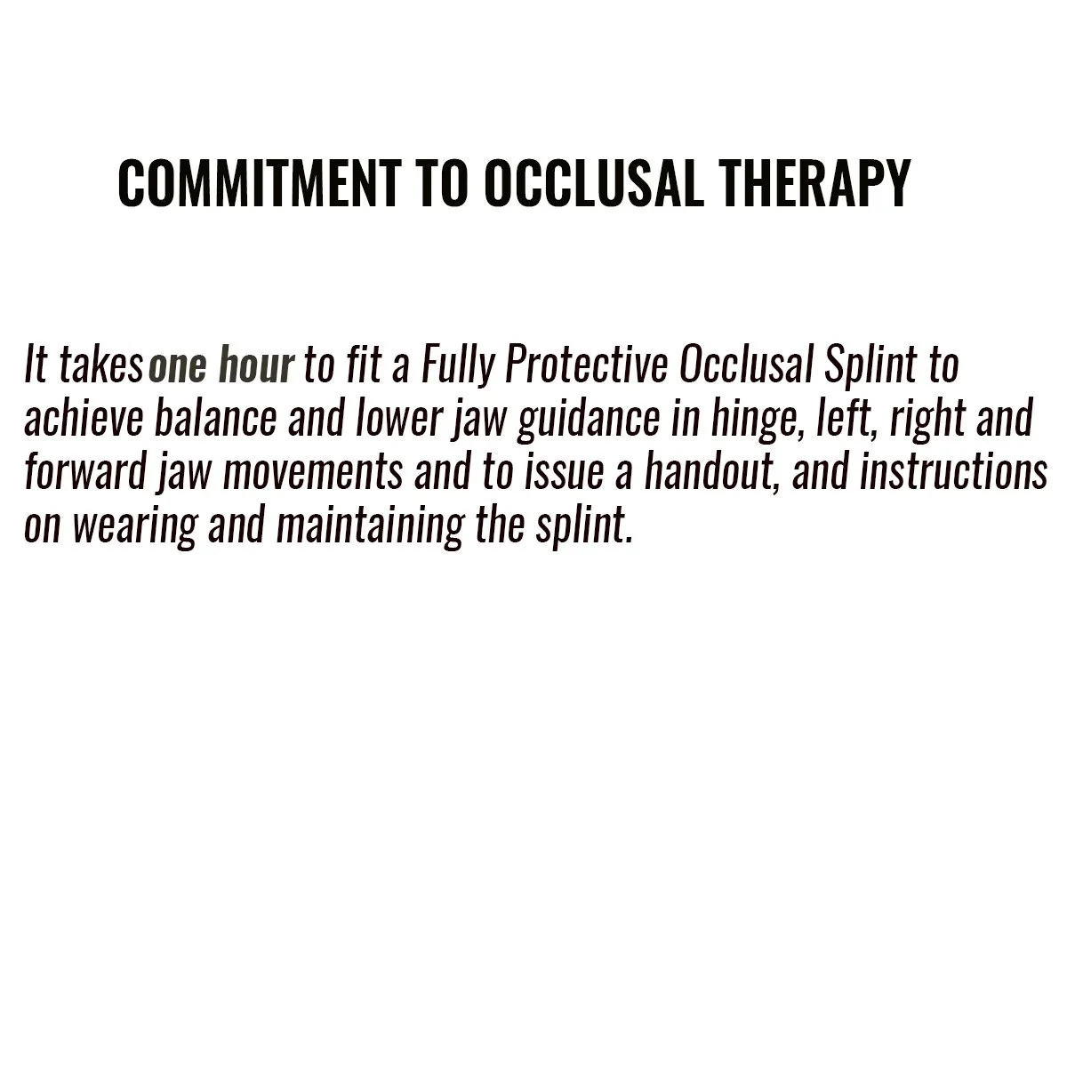 Stage 1 of Full Occlusal Therapy is Formal Fully Protective Occlusal Splint Therapy with case study